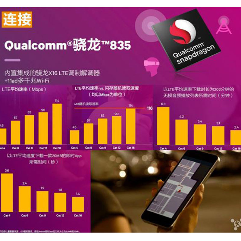 随着千兆LTE的普及,线上4K视频播放和实时VR直播将变得更加轻而易举。当然了,峰值速度并不代表实际速度,只是在某些真正提供高速LTE网络的区域性能会好一些,毕竟多频段载波聚合技术得到了提升。另外,搭载835和Exynos 8895的手机,至少在未来几年的4G网络发展中,完全不会落伍。