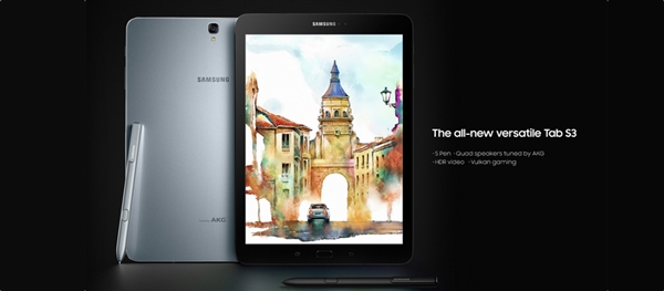 Tab S3是一款9.7英寸2048×1536 Amoled屏幕的平板,搭载骁龙820处理器和4GB RAM,32GB存储,支持最高256GB的扩展。500万前置加1300万后置镜头,USB-C 3.1接口,双频Wi-Fi,指纹识别,6000mAh电池(支持快充),安卓7.0系统。