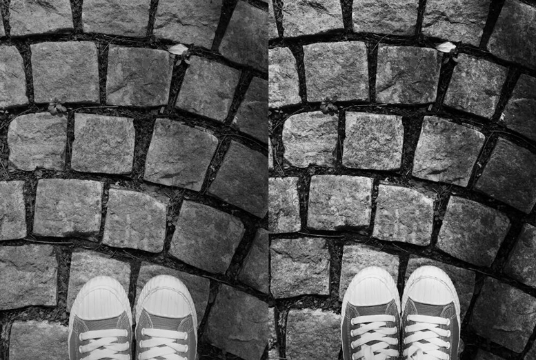 ▲继续,左图是努比亚Z17mini“黑白相机”,右图则是苹果iPhone7“黑白滤镜”。问题跟上面那一组图差不多,都是努比亚的看起来更舒展、苹果的看起来更夸张,而且努比亚在亮部、暗部的细节依然还原的很好,例如鞋子的浅颜色部分和石砖的缝隙之间;但苹果的就接近于亮部死白、暗部死黑,看起来没有一点张力。