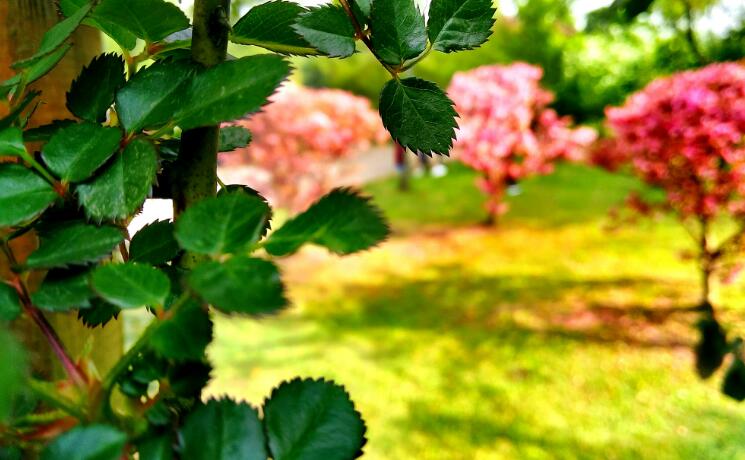 鲜花还是需要绿叶的陪伴。近处是深绿色的灌木,远处则是嫩绿的草坪和红色的花朵,两者之间的颜色反差特别强烈,但努比亚Z17mini也是还原的恰如其分,拜托了彩色RGB sensor的超强色彩还原能力,绿色的舒展、红色的奔放,都特别养眼。