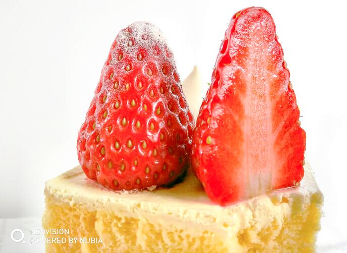 餐前甜点,草莓蛋糕最好不过了,凉凉的草莓,上面每一颗籽都非常清晰,鲜艳的色泽更是激发了食欲。在这种逆光的环境下,Z17mini依然保持了很好的曝光精度,可见双摄带来了很好的影响。在PDAF相位对焦+闭环对焦马达的帮助下,对焦也很精确。
