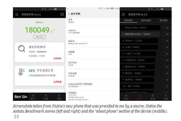 【CN314智能生活】就在“Z17”这个新闻被网友们接力关注的时候,有外媒放出了一张疑似是努比亚新机的硬件参数与跑分图,显示该机的跑分约为18万分出头!这个分数在2017年中旬来说是非常有优势的,与目前主流的高端旗舰机相比一点不落下风。