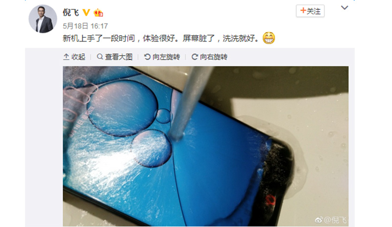 努比亚总经理倪飞的微博曝光了Z17的高等级防水功能,水流可以直接冲洗,相对国产手机常宣传的“防泼溅”功能无疑更胜一筹,这意味着Z17是完全防水的,机身无间隙,这足以让Z17的应用范围遍及绝大多数情况下的日常生活甚至户外探险。毫不客气的说,努比亚Z17的防水功能体现了其重视传达社会价值、忠于真正实用的产品设计理念,在当前的手机市场上显得格外出众。