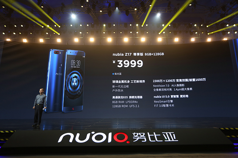 全新努比亚Z17拥有极光蓝、黑金、曜石黑、旭日金、烈焰红等配色,努比亚Z17尊享版(8GB+128GB)定价3999元,黑金版(6GB+128GB)定价3399元,标准版(6GB+64GB)定价为2799元,将于6月1日21:00开启预约,6月6日10:00在努比亚官网、努比亚全国线下体验店和京东商城同步发售。