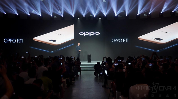 【CN314智能生活】2017年6月9日,更多年轻用户选择的拍照手机品牌OPPO在深圳举行新品见面会, “前后2000万,拍照更清晰”的R11正式亮相。在保持轻薄时尚外观的基础上,OPPO R11在拍照方面实现了全新的突破和升级,并针对用户常用的人像拍摄提供了专业的解决方案。整体性能上,OPPO R11配备了性能更强、功耗更低的高通骁龙660移动平台,搭载全新的ColorOS 3.1系统,拥有更快更安全的使用体验。同时OPPO作为王者荣耀官方技术合作伙伴,R11的游戏体验也得到全面提升。
