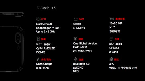 【CN314智能生活】6月21日上午,知名手机品牌一加在北京隆重举行发布会,正式推出2017年新旗舰一加5,该机以超强的骁龙835处理器、LPDDR4X规格的8GB大内存成为当前性能最强的旗舰机之一,骁龙835与8GB大内存的“双8”组合赋予了一加更强的品牌势能。该机共有两种配色可以选择,月岩灰6GB RAM+64GB ROM版本定价2999元,星辰黑8GB RAM+128GB ROM版本定价3499元,6月22日上午10点在一加官网及京东同步开售,可以说是闪电般的速度!