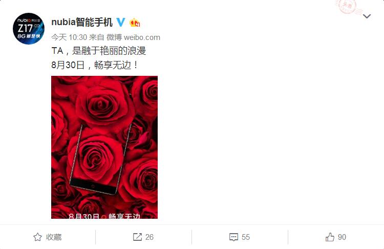 【CN314智能生活】如果让你描述一下努比亚今年的动作,你会怎么形容呢?多数人可能都会用“给力”来答复。因为今年努比亚确实推出了很多给力的机型,比如M2、N2、Z17mini、Z17等等,如此强势的产品力可以称得上是惊诧众人。而且快到九月份了,努比亚显然还是“根本停不下来”,今天就有网友发现其官微上又发布了一张预热海报:一部无边框的手机静静躺在玫瑰花束中,画风略显妖艳!