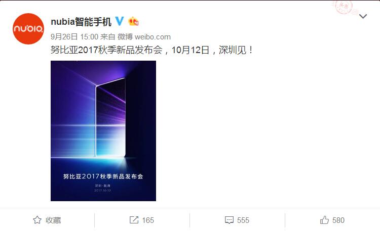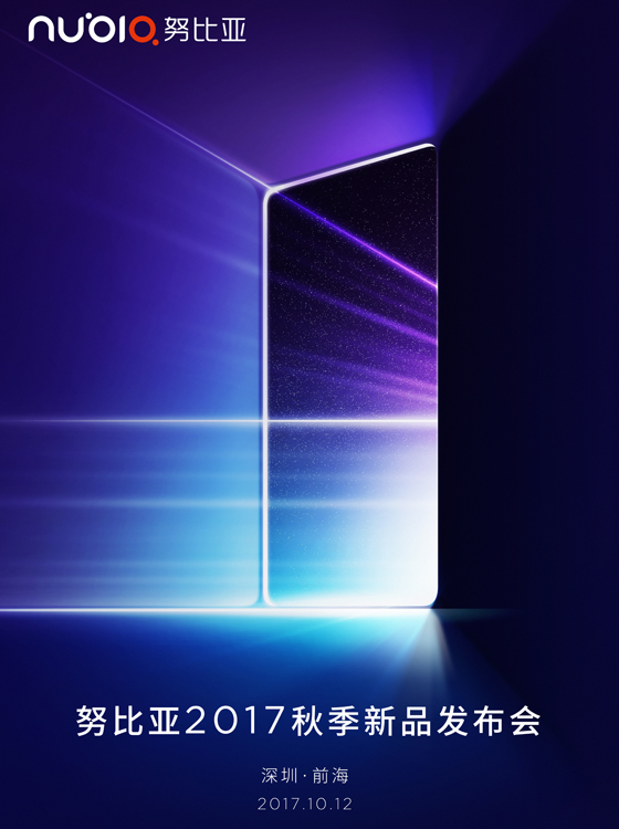 值得注意的是,在经历了许多天的密集曝光之后,努比亚终于在昨天发布了全面屏新机的邀请函,邀请函中简单明快的交代了所有事情:2017年秋季新品发布会,将于10月12日在深圳前海举行。画面上一块疑似全面屏的矩形放射着光芒,就好像一扇打开的门一样让阳光投射进来,预示着全新时代即将到来。