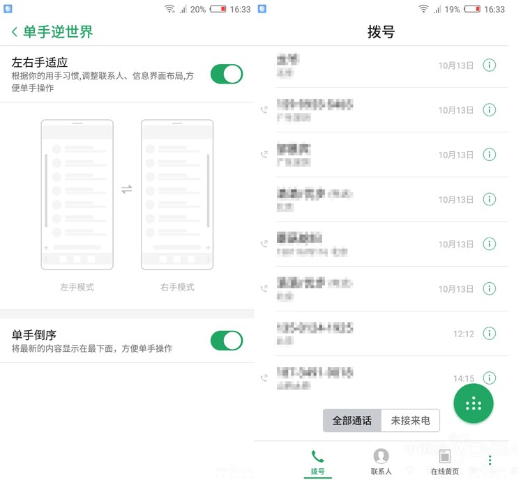 值得注意的是Z17S不仅在全面屏领域非常给力,为了解决全面屏带来的单手操作问题,努比亚还为该机内置了“逆世界”功能。简单地说就是将通话记录等列表进行倒序排列,这样一来就将最近的联系人放置到屏幕最下方,这样一来就能让玩家轻而易举的触摸到,不用再纠结屏幕顶端的操作死角;并且,使用频率最高的APP图标也会被排列到屏幕底端或者靠下的位置,只要拇指一伸就能点击到。这样看来,“逆世界”从一个微小的细节上解决了大尺寸全面屏手机单手操作死角的问题,不管是外观设计还是细节体验,Z17S都更加优秀。
