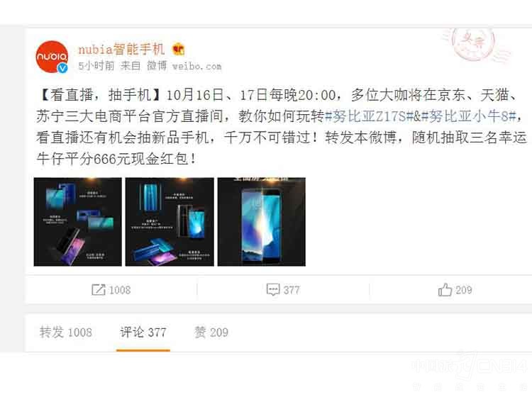 【CN314智能生活】自努比亚秋季新品发布会之后,努比亚全面屏旗舰Z17S和八代小牛Z17miniS就一直备受关注。努比亚官方微博发布的一条关于两款新机的消息,就引起了网友们的疯狂转发。