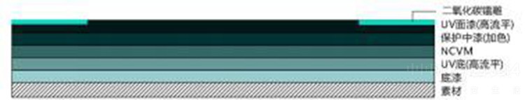 其中,塑胶仿陶瓷效果PCI通过在产品素体表层喷涂黑色底漆,然后喷涂高流平UV底漆、真空不导电电镀(NCVM)、喷涂纳米色浆中漆和喷涂UV面漆,一步步完成。