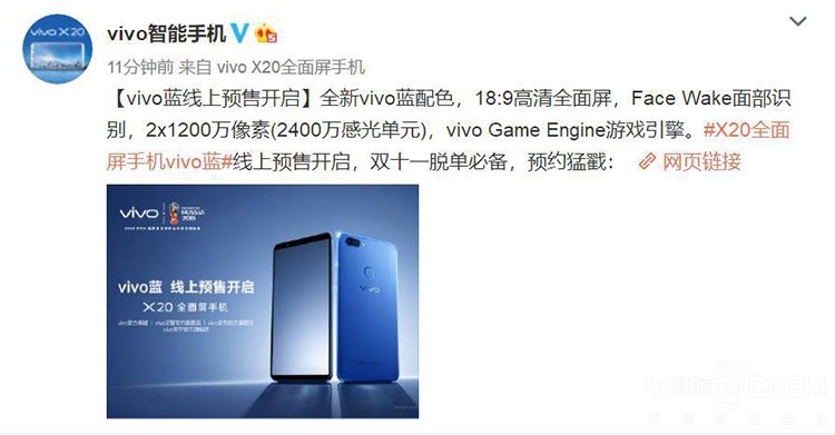 ▲X20 vivo蓝已经开启预定,原价!