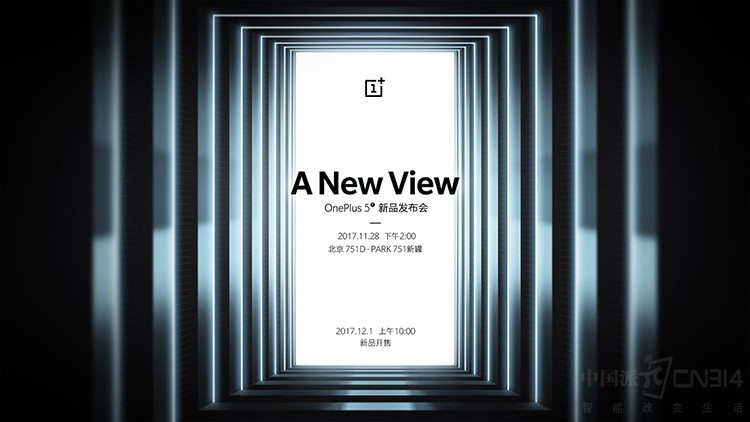 【CN314智能生活】11月7日,一加手机官方正式公布新品发布信息,全新旗舰产品一加5T将于11月28日14:00在北京751D · PARK 751新罐正式发布,并将于12月1日上午10:00极速开售。