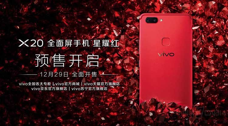 【CN314智能生活】万众期待的圣诞节又到了,大街小巷都挂满了圣诞装饰,许多商家也响起了节奏欢快的《Jingle Bells》,空气中弥漫着浓烈的圣诞气息。为了庆祝这个狂欢Party,本月16日vivo发售了vivo X20星耀红圣诞限量礼盒,成为圣诞的最好选择。今天,vivo再度献礼,宣布X20全面屏手机星耀红版在vivo官方商城(shop.vivo.com)、vivo天猫官方旗舰店(vivo.tmall.com)、vivo京东官方旗舰店(vivo.jd.com)、vivo苏宁官方旗舰店(shop.suning.com/30000019)、vivo全国各大专柜预售开启,64GB版售价2998元,128GB版售价3198元,12月29全面上市,献给网友最好的2018新年礼物。