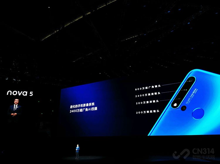 在本次发布会上,华为还推出了入门款nova5i,6.4英寸极点屏,后置指纹解锁,电池容量则达到4000mAh,续航出众;硬件配置上,nova5i搭载麒麟710处理器,并配有8GB内存;摄像头方面nvoa5i相比前两款有所缩水,前置2400万像素微塑美拍,后置AI四摄则采用了2400万+800万+200万+200万组合,足以满足用户日常拍照所需。