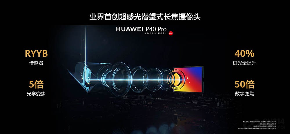 值得一提的是,三款手机的主摄传感器均为 RYYB的传感器,底达1/1.28英寸,单位像素面积1.22μm,四合一像素面积2.44μm,进光量ISO大于20万, 增加40%进光量,实现更好的暗光拍摄效果。从发布会样张展示来看,变焦、暗光、细节的清晰度华为P40 Pro都取得了非常不错的成绩。