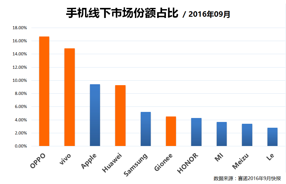 近日,权威统计机构赛诺公布了2016年10月份的中国手机市场报告,其中数据显示10月份国内市场线下市场的总销量达到3859万台,高于去年同期水平14.3%。不出所料的是,“金华OV”在线下市场销量方面继续领跑,在激烈的市场竞争中位列前四。
