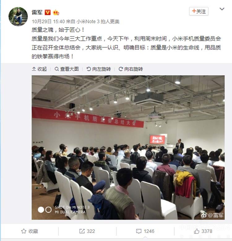 【CN314智能生活】一款手机品牌想要在行业市场站稳脚跟,除了技术创新、完善的供应链和渠道外,还有不可忽视的一点就是质量,因为这跟用户的使用体验和好感度直接挂钩。近日,国产品牌小米召开了一次手机质量委员会,CEO雷军在微博表示:质量是小米的生命线,用品质的铁拳赢得市场。此微博放出之后立刻引起了网友们的热议,虽然内容积极向上,但评论区绝大部分网友竟吐槽起小米的质量来!