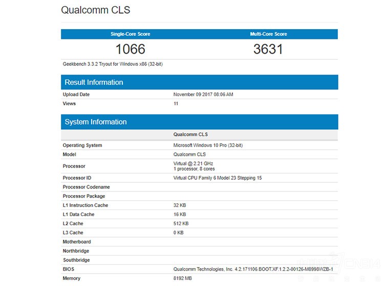 一份泄露的benchmark成绩显示,疑似骁龙835版Windows 10设备的表现并未给人留下深刻印象:运行32位Windows 10 S的跑分数据为单核1202,多核4068分;当运行Windows 10 Pro时,这一得分还要更低,分别是1066和3631。作为对比,英特尔Core-i3的跑分数据为单核3692,多核11860,可谓相距甚远。