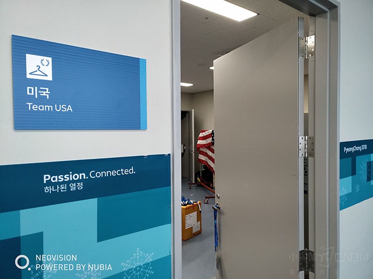 上面是美国队的休息室,这个地方闲杂人等就不太容易混进去了,所以只有在门口偷偷一拍。但是我们看到本届冬奥会的主色调是蓝白为主,努比亚镜头下的Passion Connected相当养眼,毕竟色彩处理上努比亚一直很有优势。