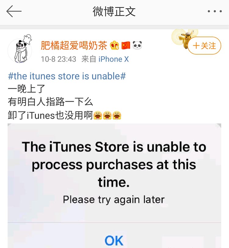 虽然有用户表示这类问题只要删除了iTunes Store就能解决,不过还是有网友表示这一方法行不通。至此,我们也无法判定它是硬件、或者软件层面的问题,甚至有可能是苹果的服务器带来的影响,只能让苹果抓紧修复了。