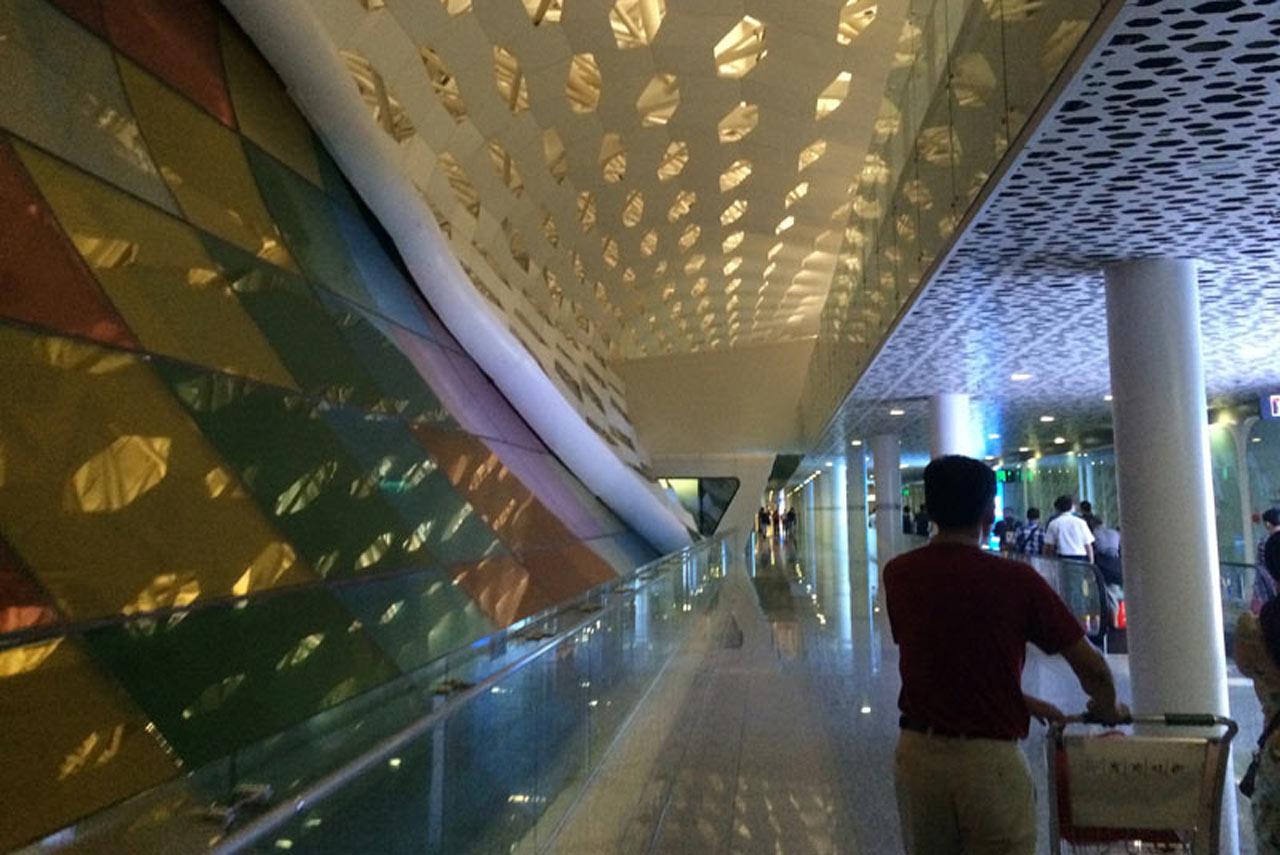 第1天 深圳市宝安国际机场 宝安机场的建筑比较有特色,彩色玻璃+孔洞式设计,非常前卫。