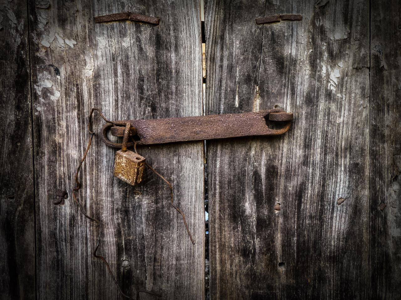 第1天 充满年代感的大门的锁,已经是锈迹斑斑,木板上也是伤痕累累。