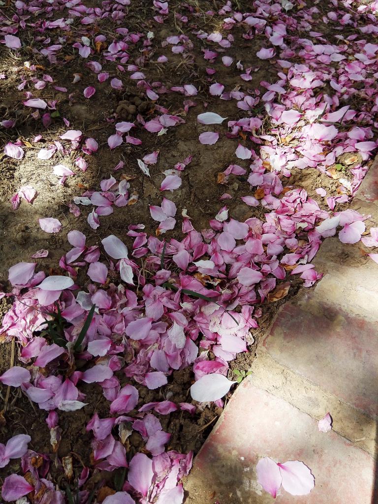 第1天 大团大团的花簇,清风一吹,很多花瓣都跟着风飘落。