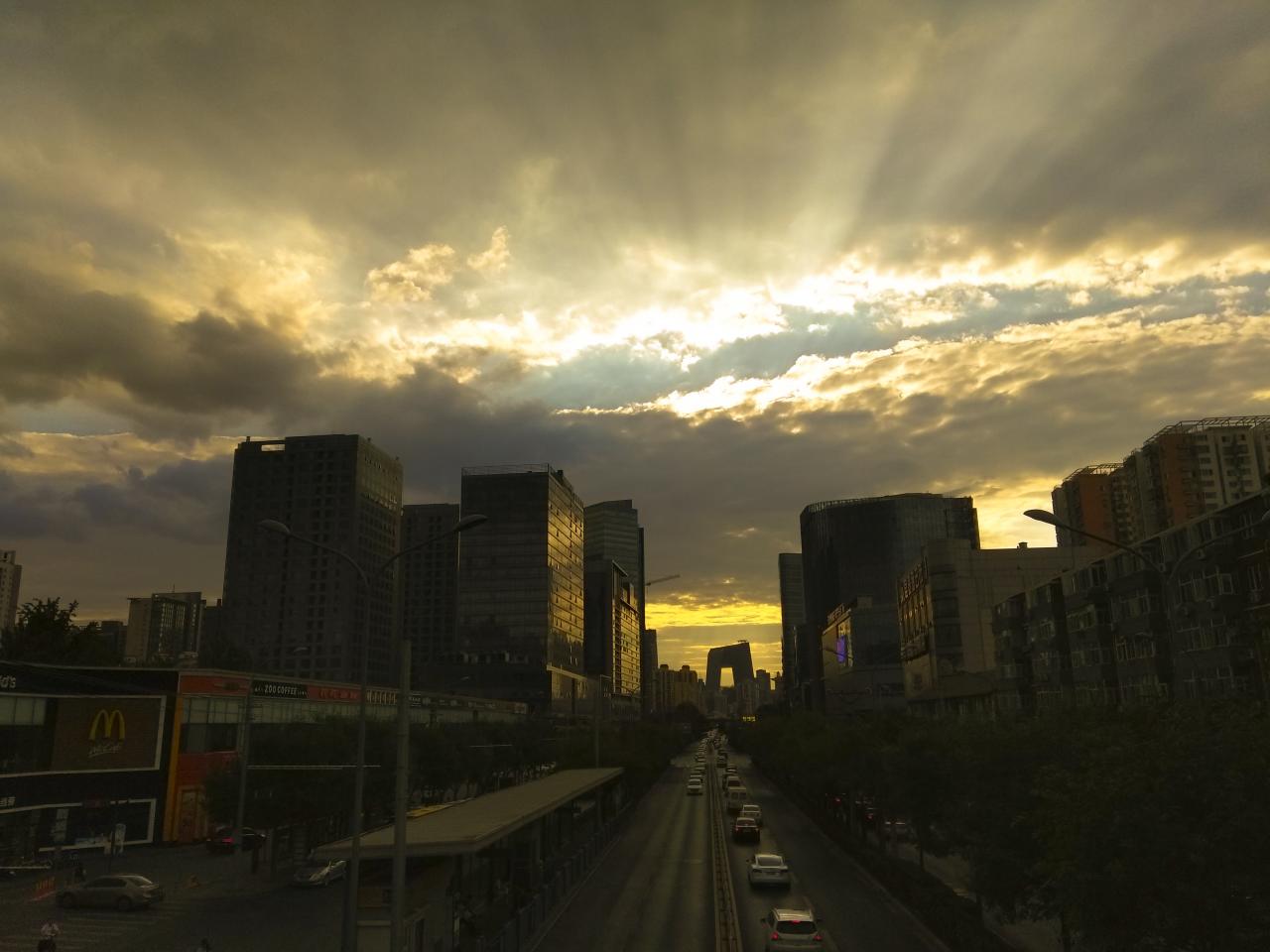 第1天 换个角度看一下今天的夕阳,等天再黑一点拍优衣库那个楼,你们懂得。