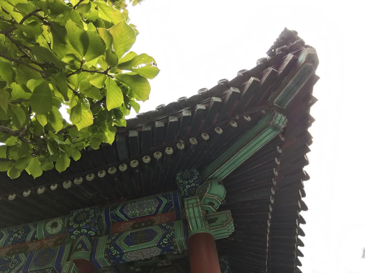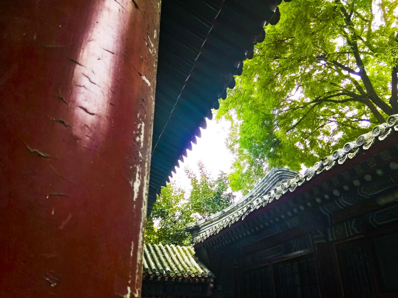 第1天 绿叶掩映着红墙,在中国古代园林艺术里,红和绿是最主要的色彩搭配。