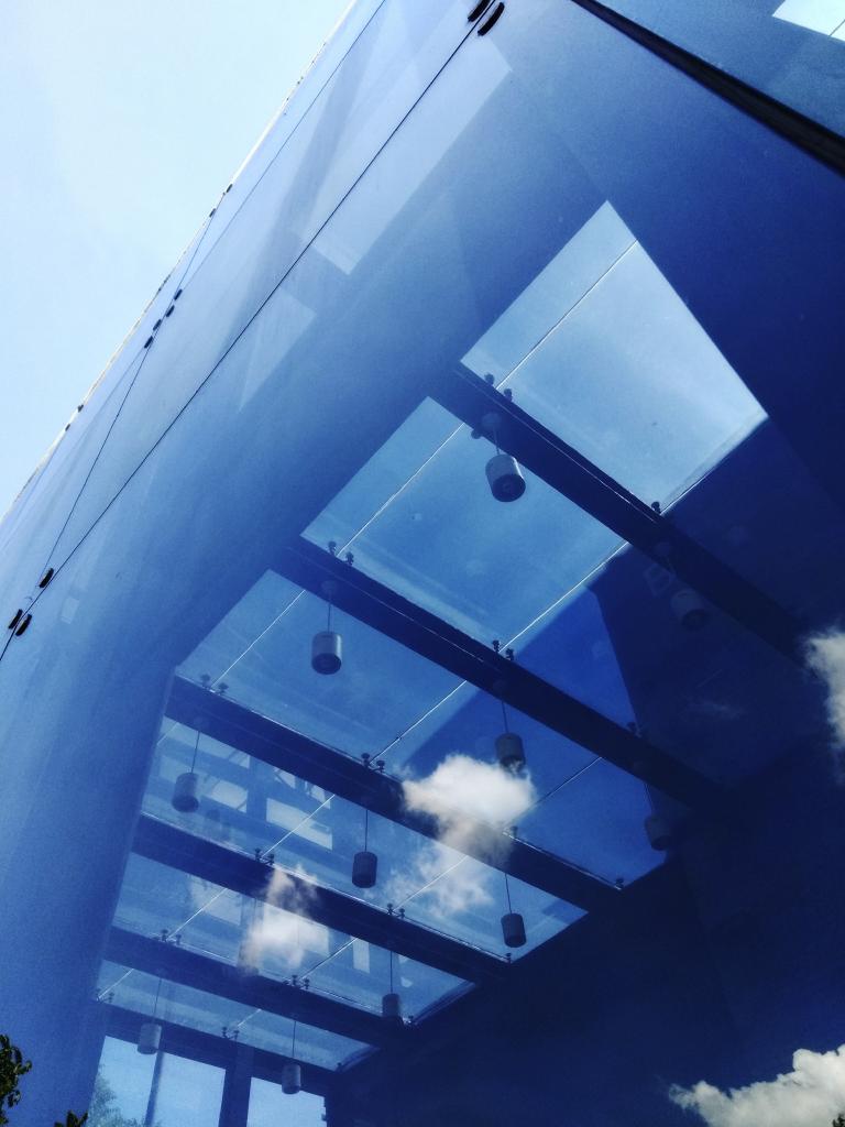 第1天 路过一个全是玻璃的建筑,在蓝天和白云的映衬下显得很有科技感