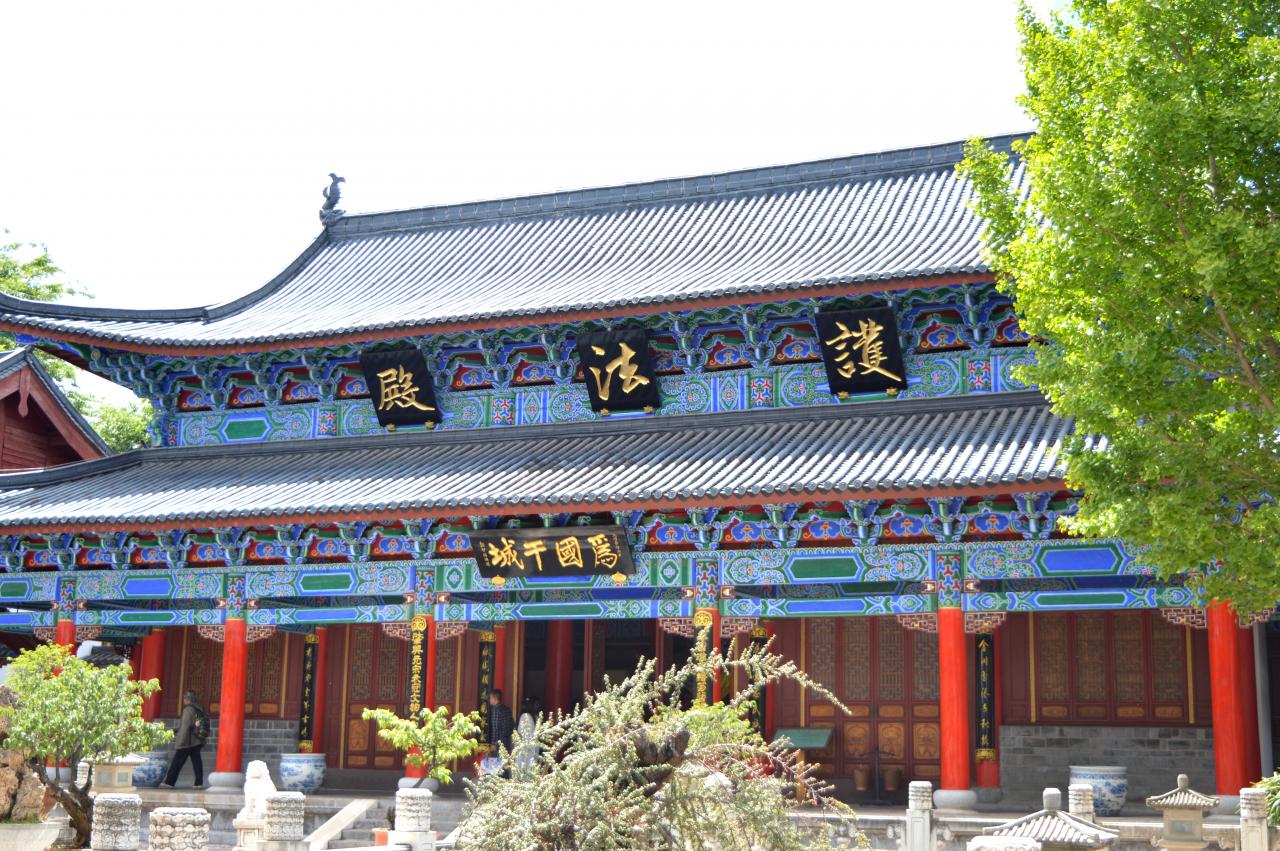 第1天 护法殿又称后议事厅,是土司议家事和祭祖之地。护法殿正中的墙面上悬挂着东巴教诸神,上面写满了神秘的东巴文。中间案台上有木氏的祖先牌位,两边墙上挂着六位土司的画像(由于看过《木府风云》,于是对这几幅肖像颇感兴趣,心想,原来这位就是木增土司)。旁边有长凳、棍棒,这是动用家法、管教子女用的。