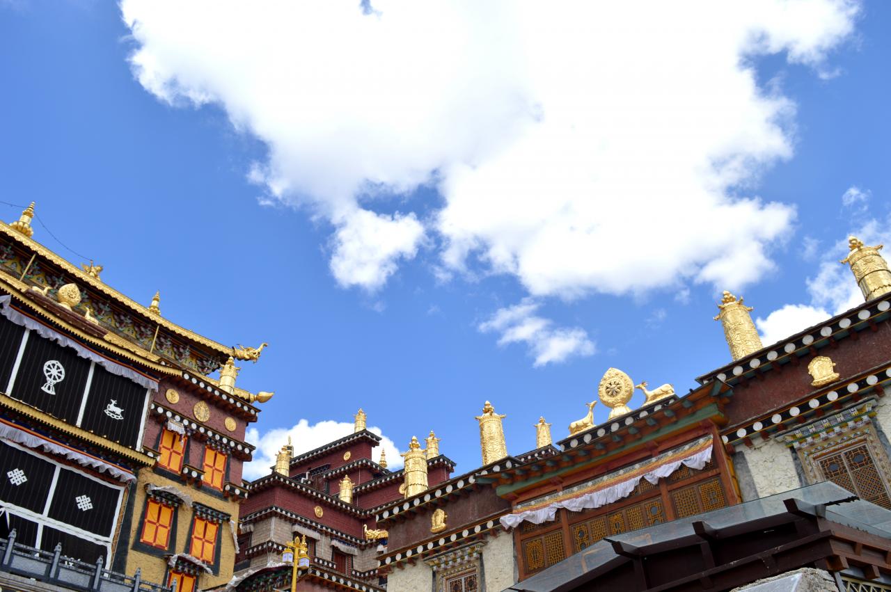 第1天 我不是一个佛教信徒,但当我看到蓝天白云下的小布达拉宫松赞林寺时,心中总有一种按耐不住的想要去膜拜的冲动。这里绝对是一个能够让我们洗尽铅华的地方!