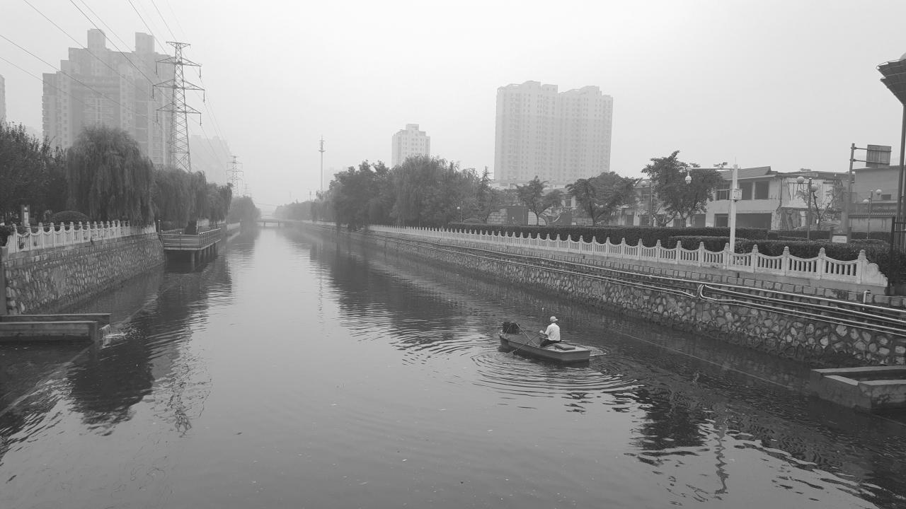 第1天 身处繁忙的都市,偶然放慢脚步发现原来北方的城市里也可以看到南方泛一叶扁舟的悠闲景象,在黑白模式下老人和小舟显得更加静谧。