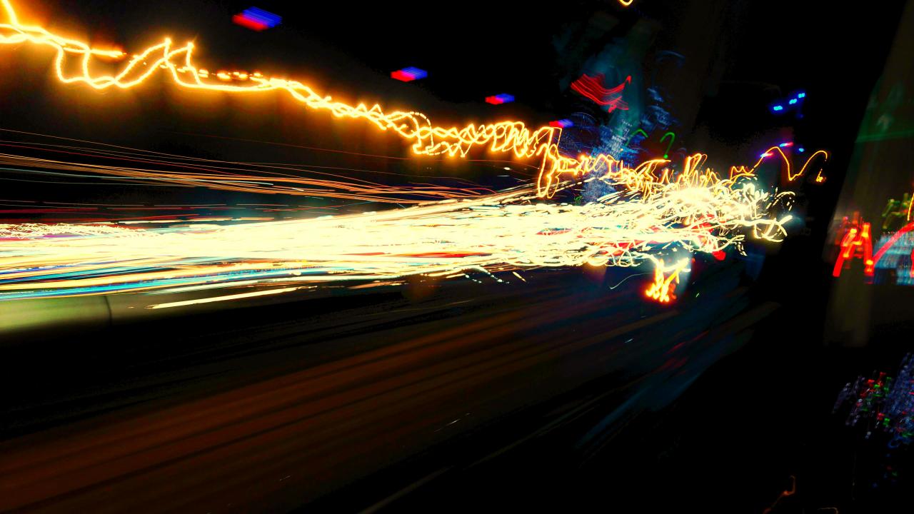 第1天 行走在高速上打开手机的长曝光模式,这样只留下车灯划过的痕迹,而不受车体的影响带来一条非常美丽的光绘彩虹。