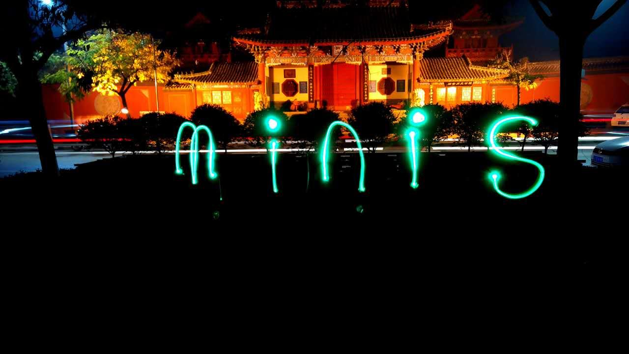 第1天 先用三脚架固定手机,打开努比亚miniS的长曝光模式,然后让“艺术家”拿着光源就位,拍摄过程中作画不要停顿(需要停顿的视情况而定),等作画结束后艺术家要迅速闪开到镜头外,简单的几个步骤就可以完成一副精美的艺术品。