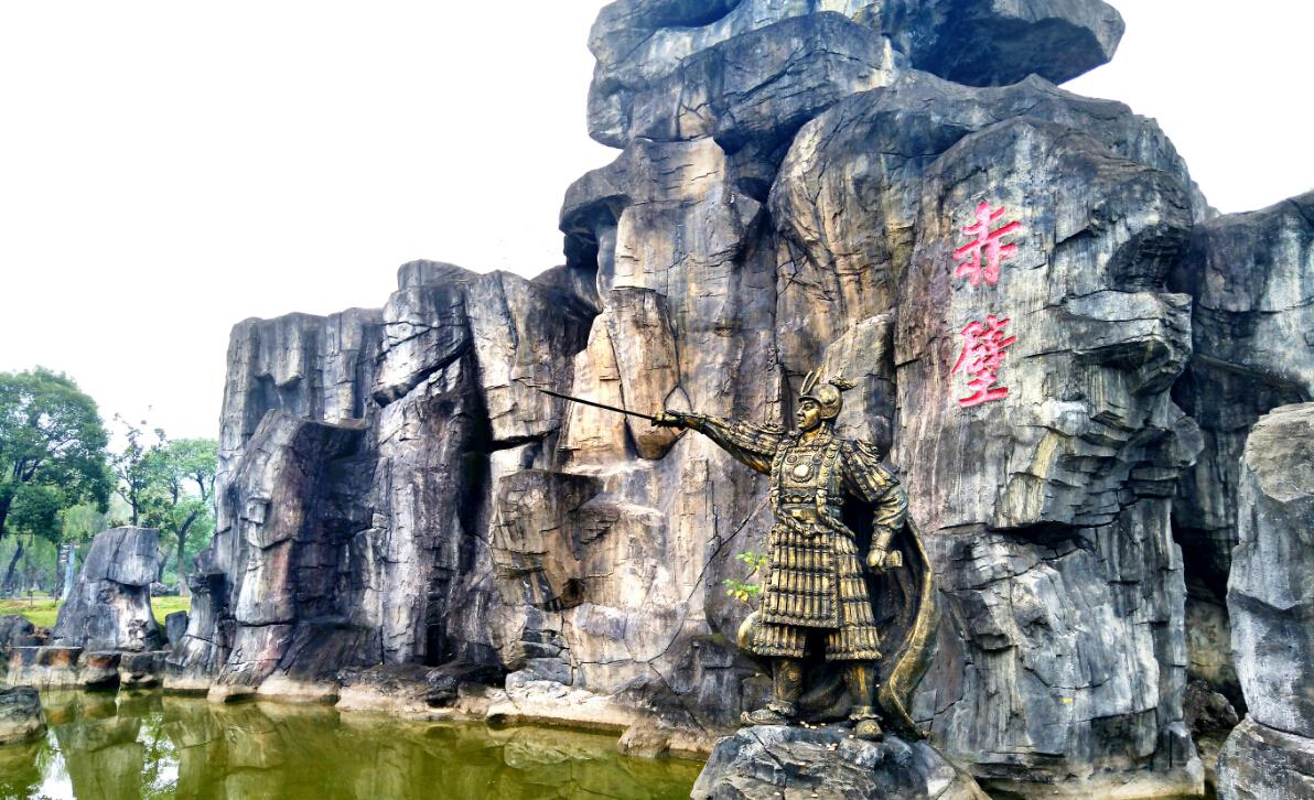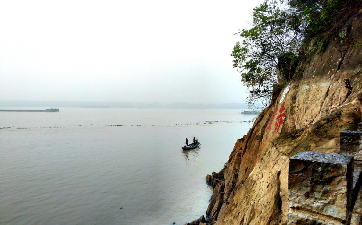 第1天 周瑜广场拾级而下,就是著名的摩岩石刻,在赤壁沿江悬崖上有石刻“赤壁”二字,各长150厘米、宽104厘米,据说当时赤壁大战,孙刘联军火烧曹军战船,江面一片火海,把江边崖壁映得通红,周瑜率兵大败曹军后,把酒庆功,酒酣之余,提剑在崖壁上刻下“赤壁”二字,因是巨手神笔,力盖千钧。