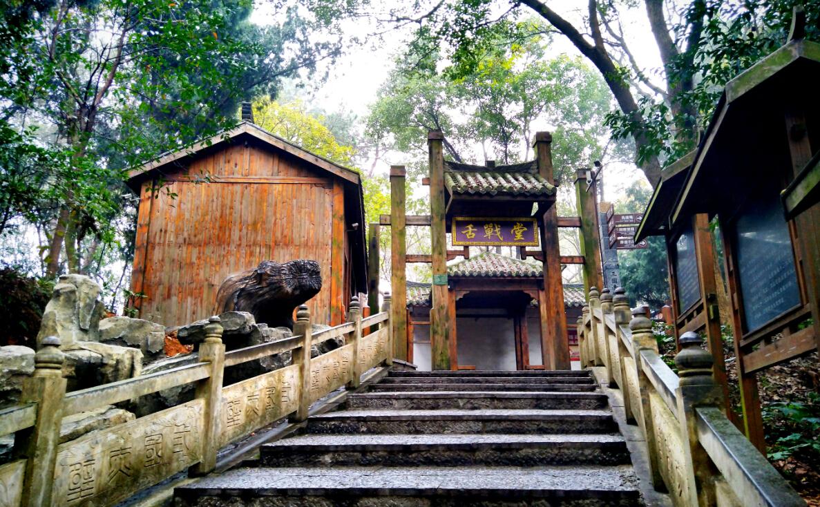 第1天 沿古城墙拾级而上,经钟鼓楼三十六计长廊授计堂到达凤雏庵,庵外有千年银杏树一株,其枝叶如一巨大伞盖,荫盖着凤雏庵。