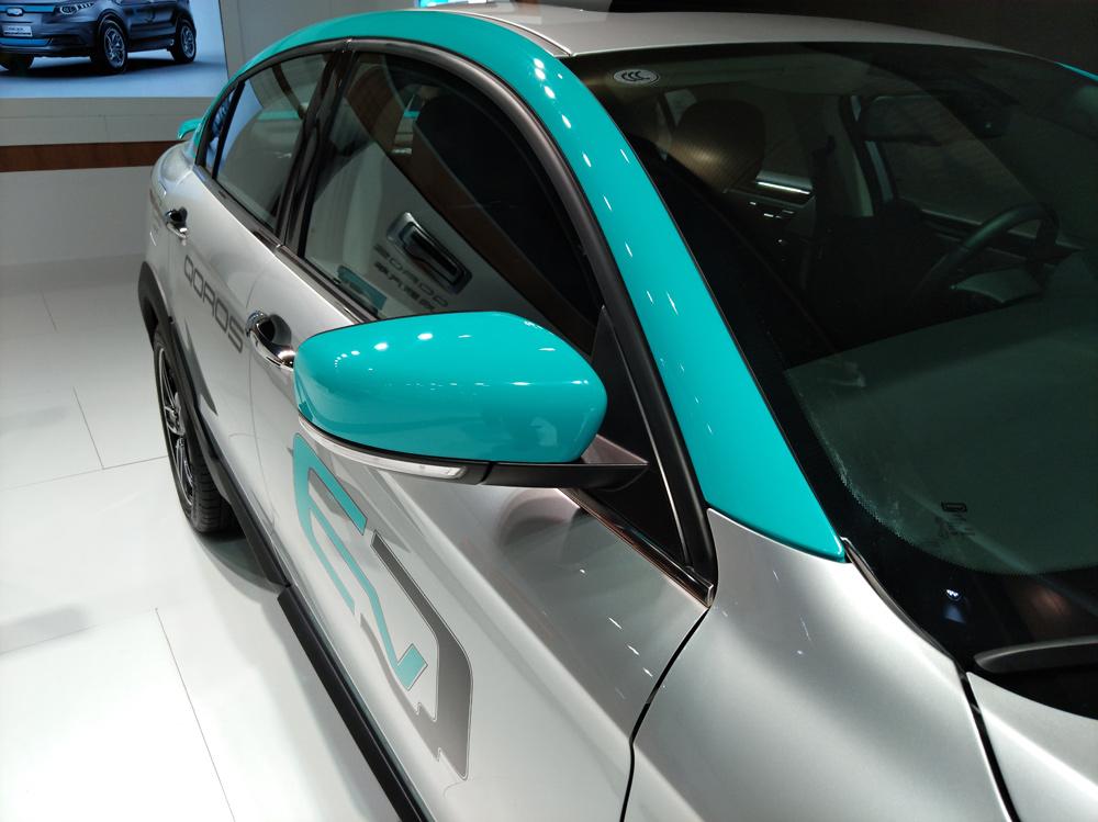 第1天 除了这款观致3 GT还展出了一款纯电动概念成型,采用银和青撞色设计,显得非常大胆活泼。