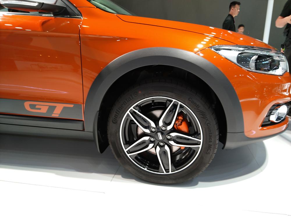 第1天 观致3 GT不同于传统轿车,采用非常大胆的撞色设计,橘红色和黑色轮胎相间,给整部车带来一些活泼、不羁的感觉。下面来看看汽车造型的细节展示。