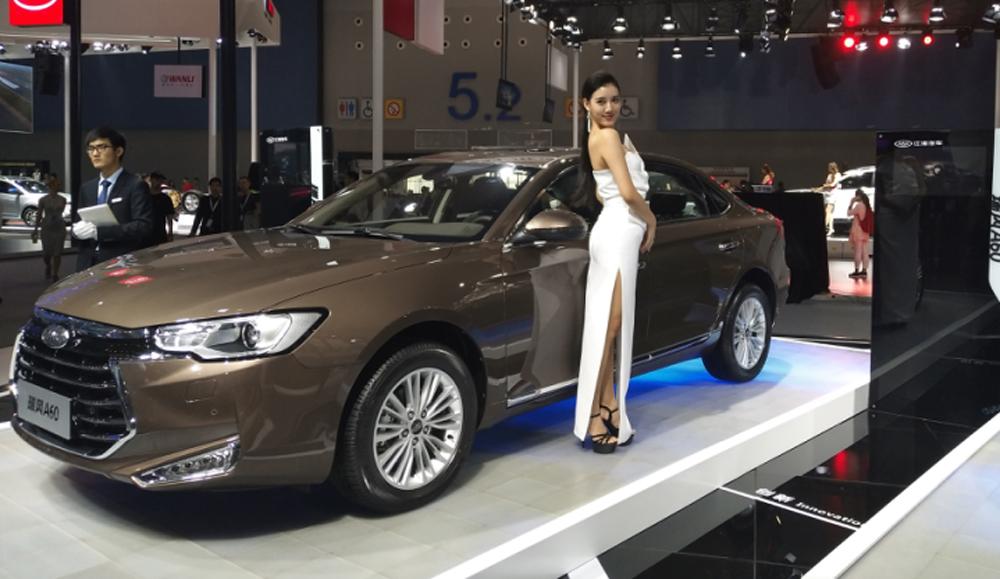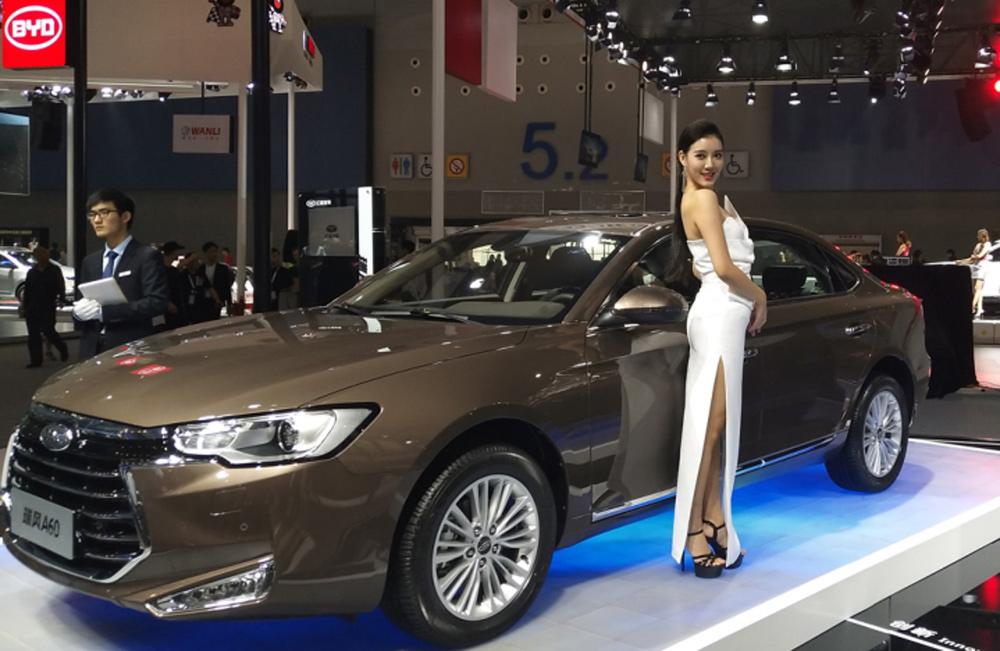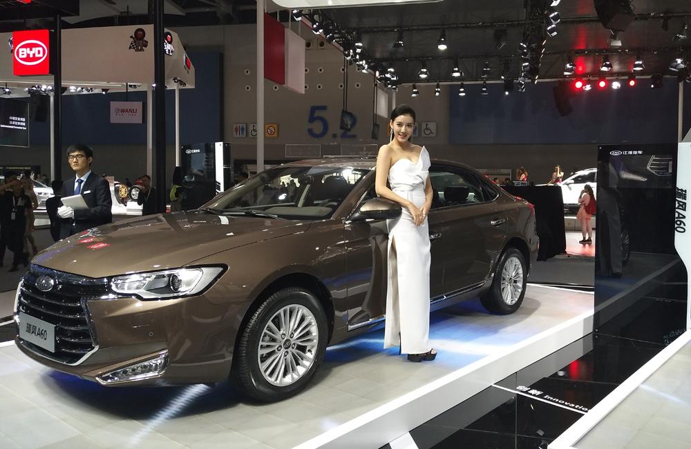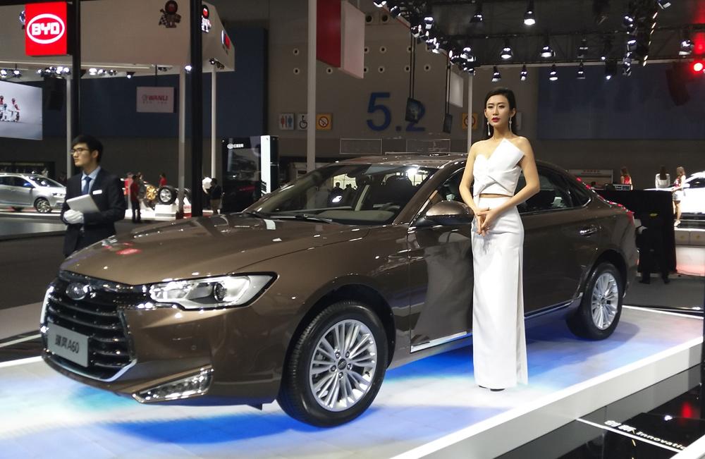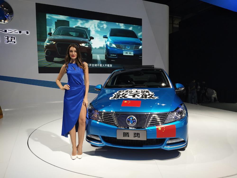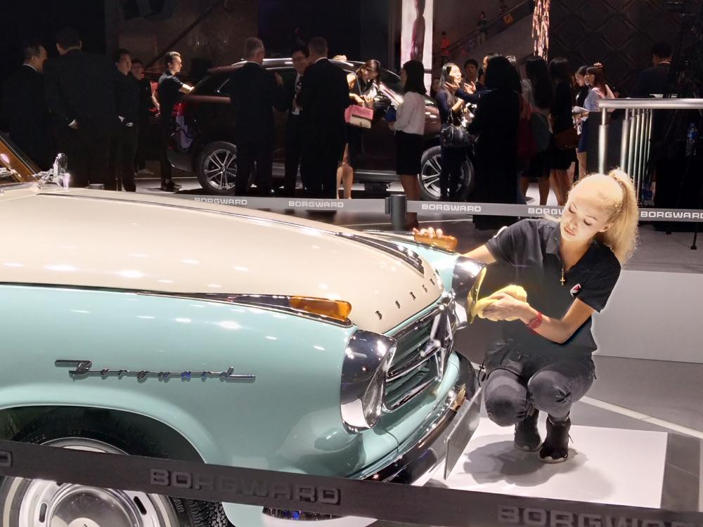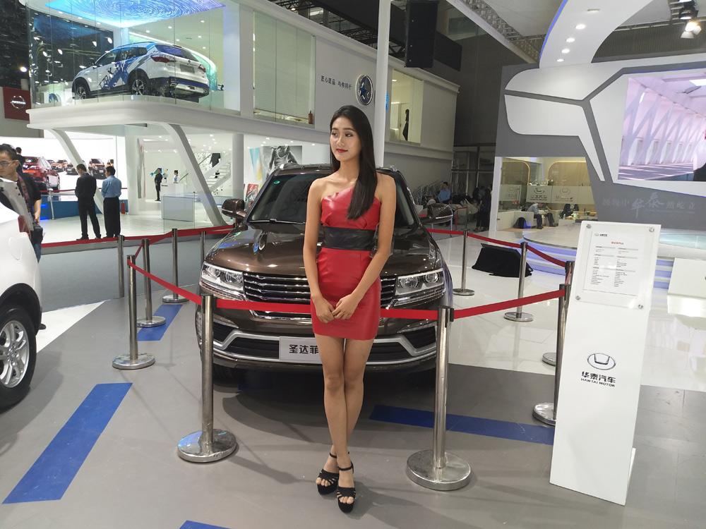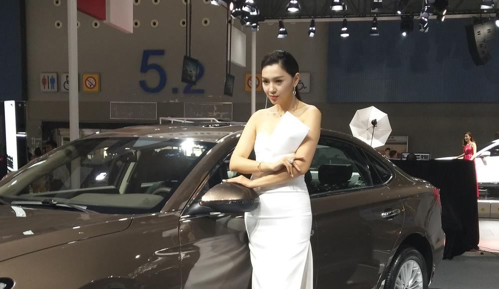 第1天 不得不说这个车模很有“心机”,众多单色中出现一席红装,在整个展区中都非常显眼。