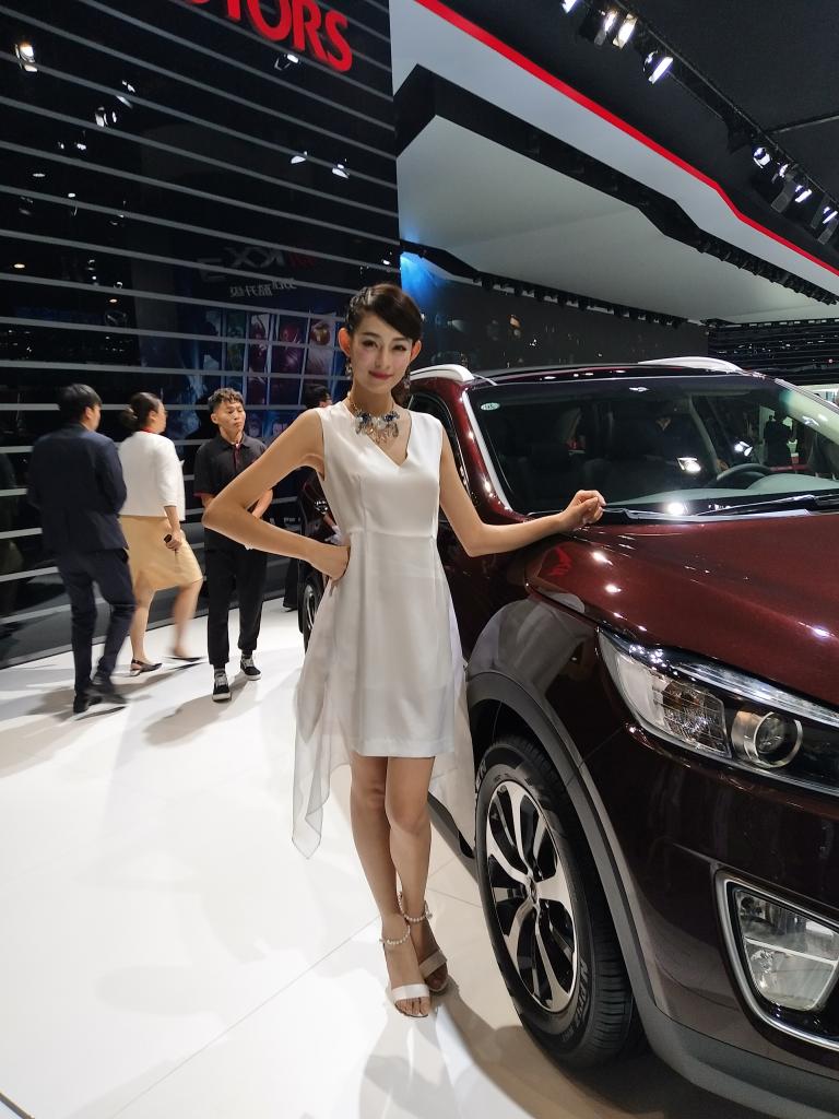 第1天 虽然拍照这张照片时并没有使用手机内置美颜功能,但是仍旧把车模拍摄的非常靓丽动人。