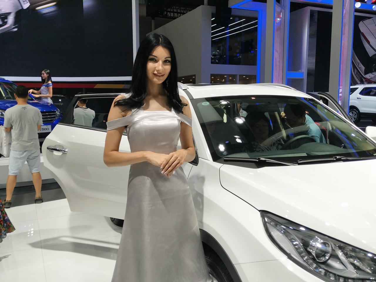 第1天 白色的车身,搭配一身素装的女生,这似乎是最出色的体验了。这种组合也是车展上较为常见的。