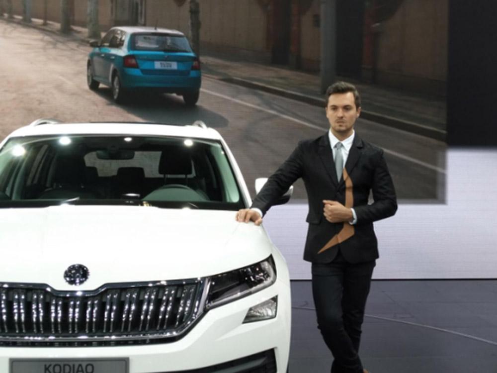 首先看到的是一款斯柯达的柯迪亚克,车头设计很独特啊!展厅的光线也很好,拍在照片上也不失车身的原有色泽。