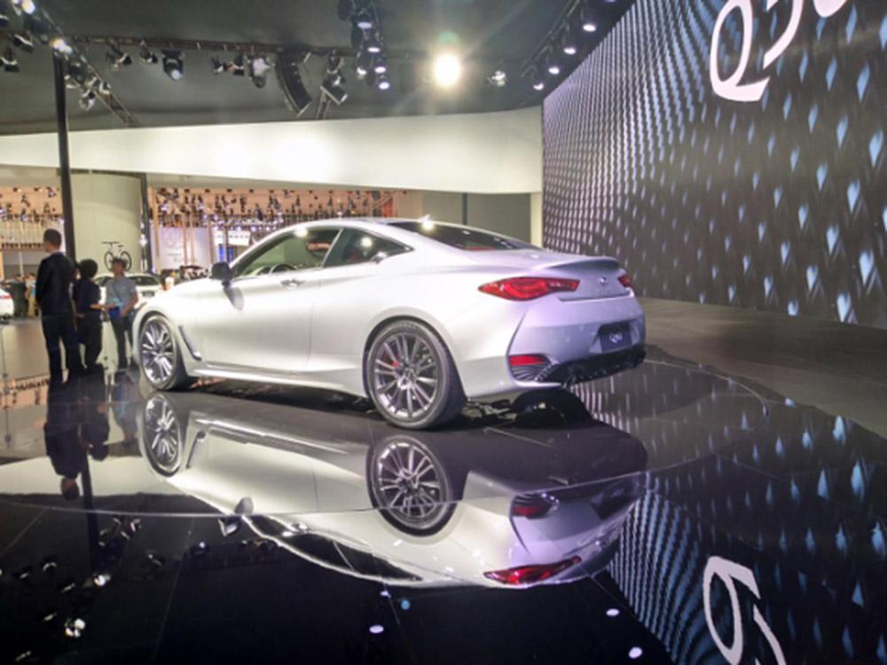 第1天 换个角度,灯光打的也恰到好处,搭配着黑色的背景,更衬出了英菲尼迪的画面主体地位,崭新的车身,高端大气上档次!