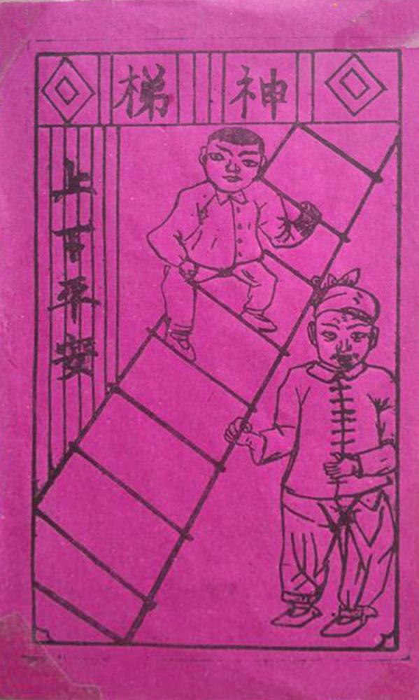 第1天 一般都会在院子里会张贴土神和井神,梯子上要张贴梯神。