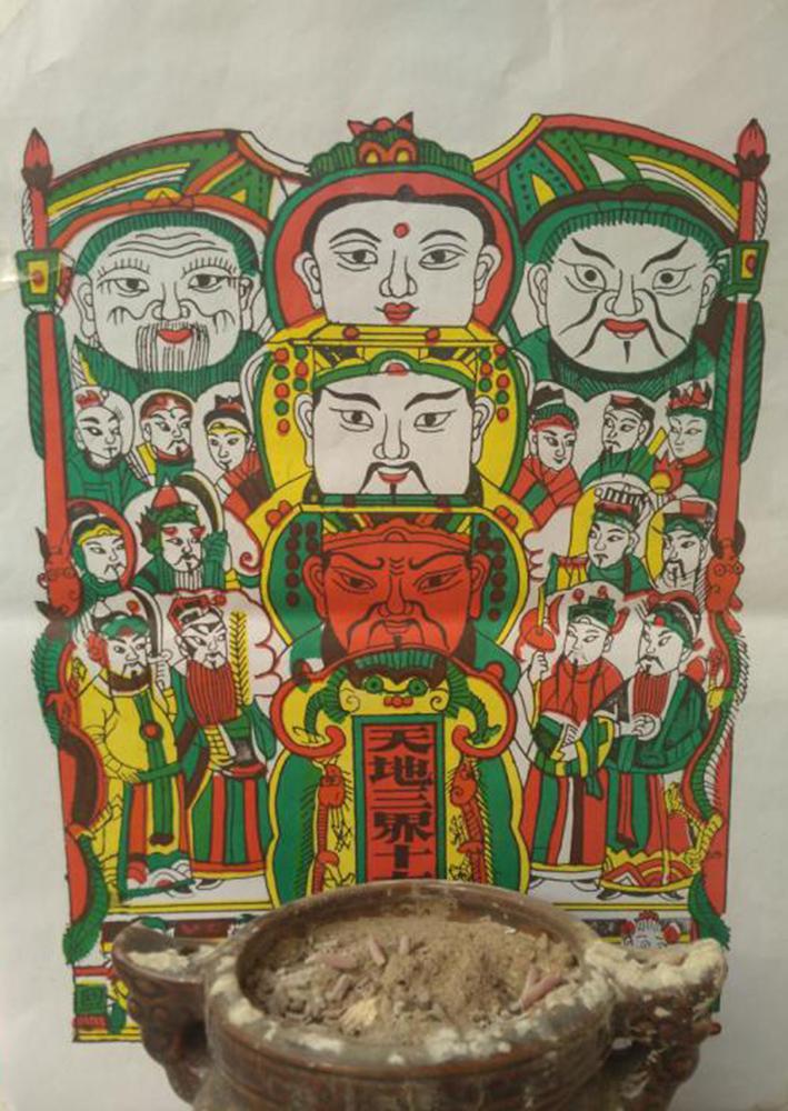 天地桌上供奉着天地全神,他是最大的神灵,长掌管天地人三界,保佑一家人的平安,最先接受着供奉和香火。