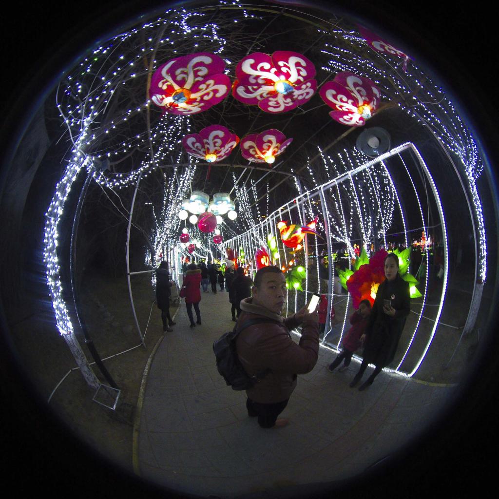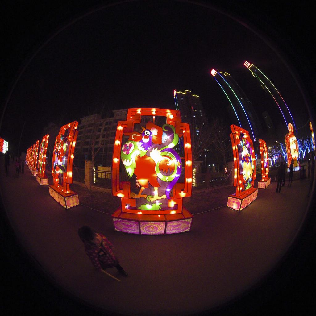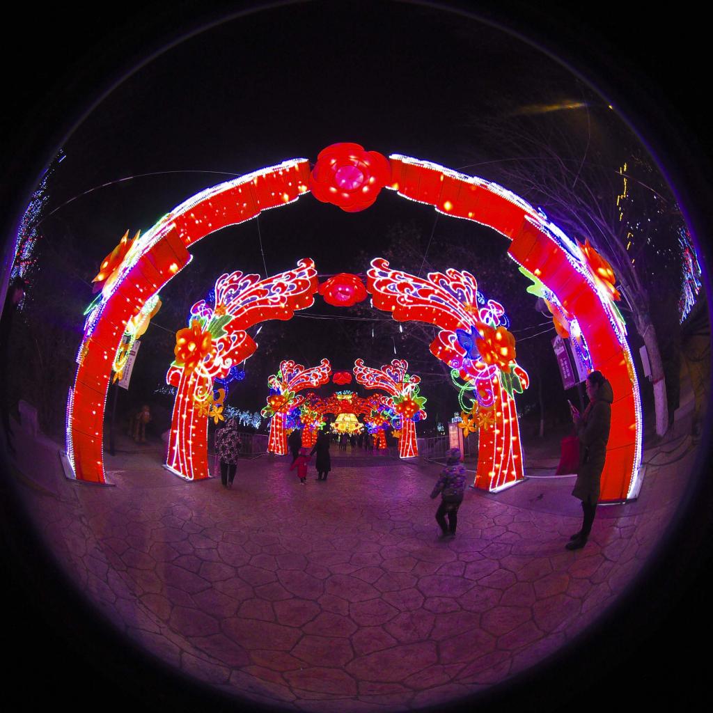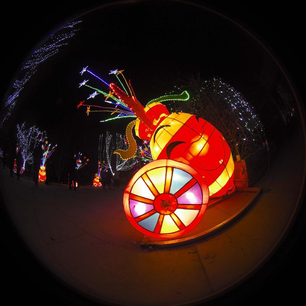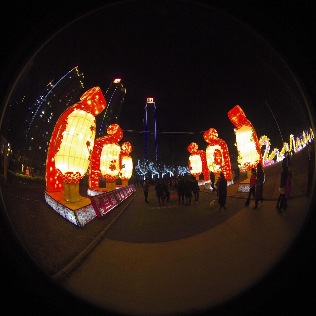 第1天 过年啦花灯组合,Camorama4K全景摄像机能够离着花灯非常近把十米长的花灯组合拍摄到一个画面中。