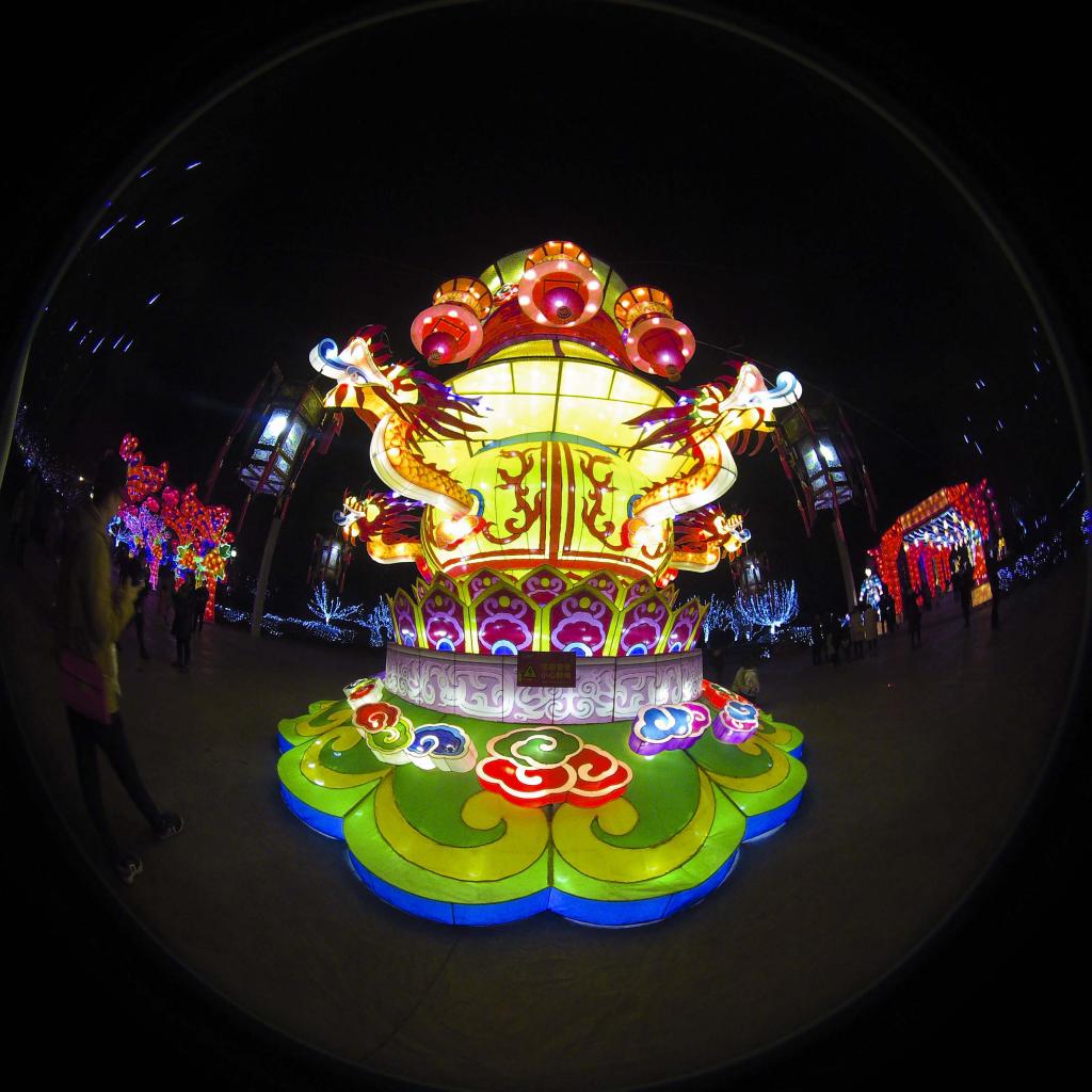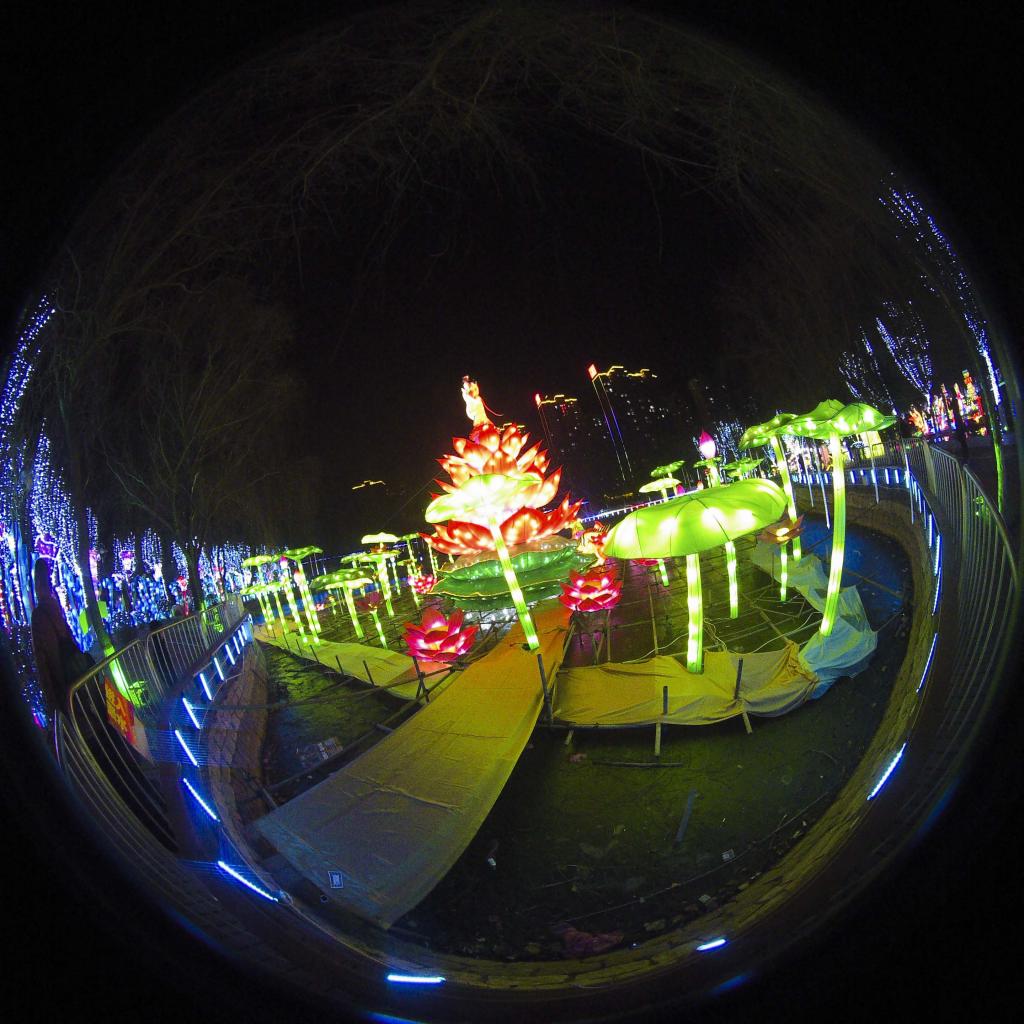 一个个精巧别致的工艺灯和大型灯相结合,巧妙布置于园林山水之中,惊艳了整个石家庄。(文中所有照片均为Camorama4K全景摄像机拍摄)
