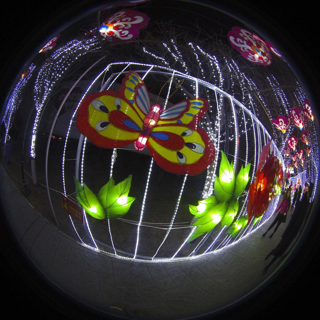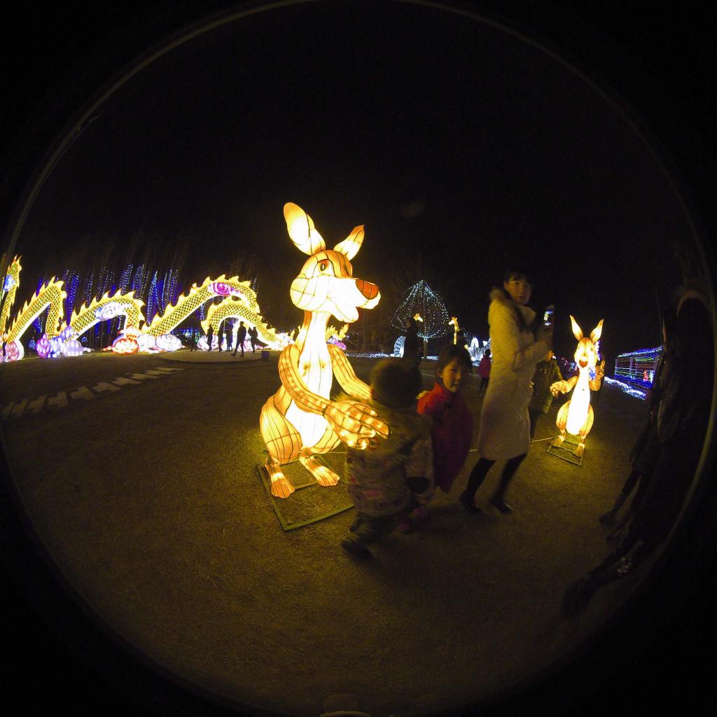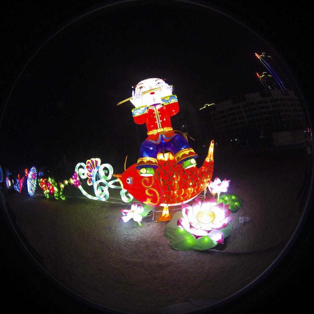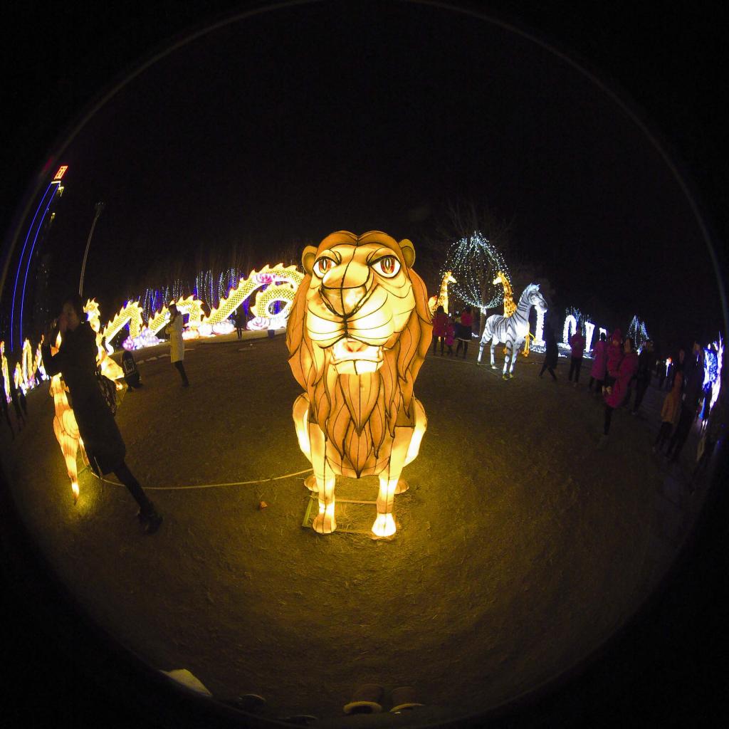 第1天 走进游园会,仿佛走进了一个动物园。Camorama4K全景摄像机可以将整个孔雀花灯都收入到照片里。